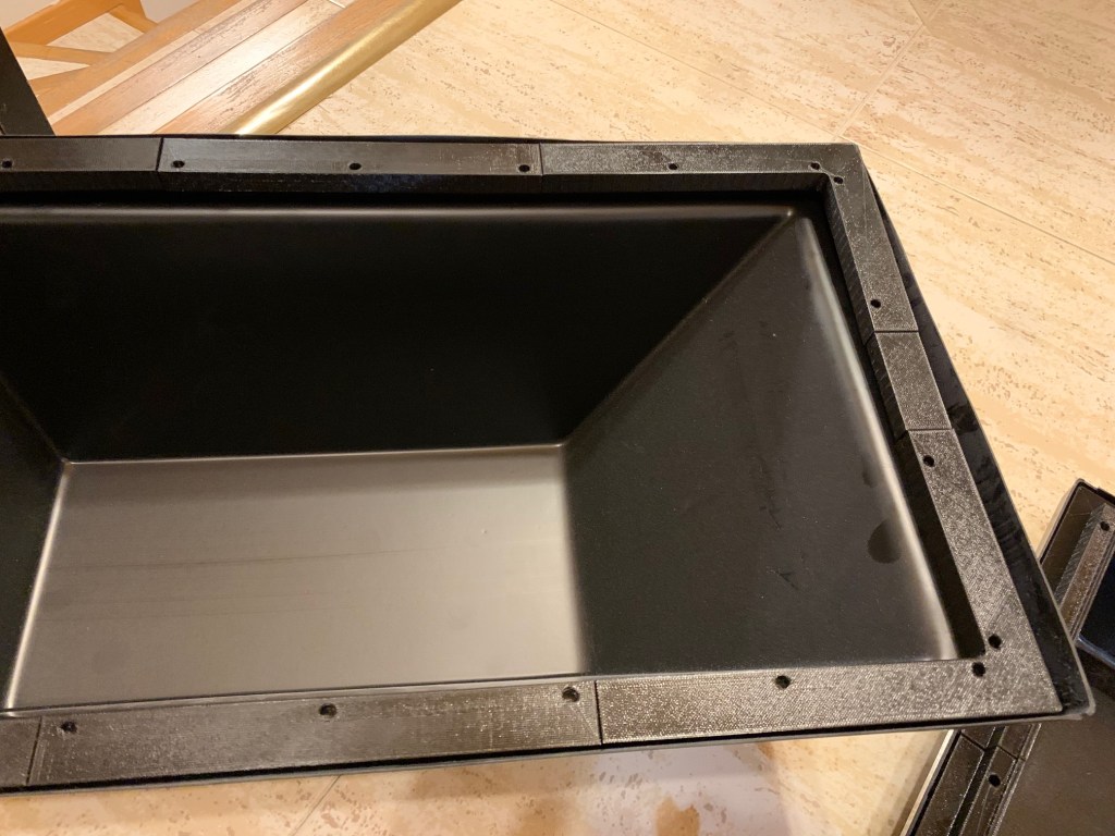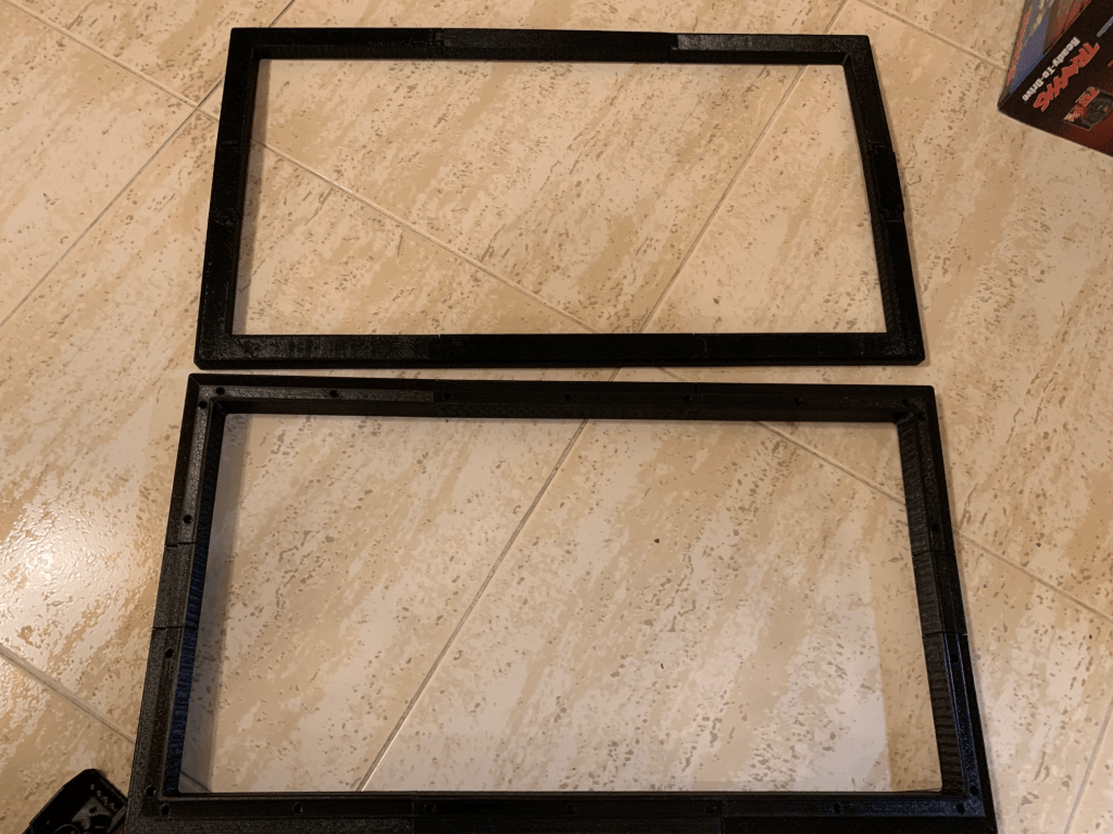 Ahí podéis ver como va ese marco en ambas partes de las carcasas. Los agujeros son para poner imanes que mantienen unido el conjunto. Todo el plástico de las carcasas que sobre sale tocará cortarlo con mucho ciudado.