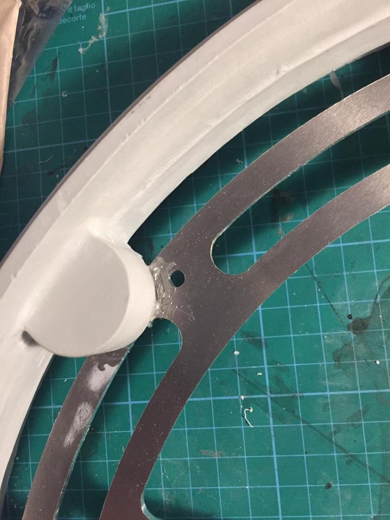 Para el problema de que no encajara en mi aro, vi que era un problema que pasaba a todo el mundo que había cogido este dome. Tocaba rebajar todo el interior del aro con mucho cuidado de no pasarse, y luego fijar un nuevo al dome con su propio SlipRing, ya que no había otra forma de fijar el dome sin que hubiera peligro de rotura. Os dejo algunas fotos.