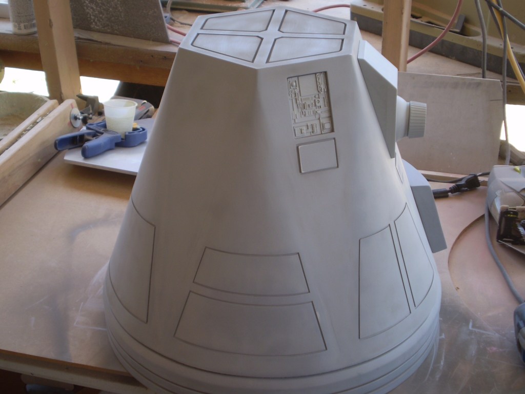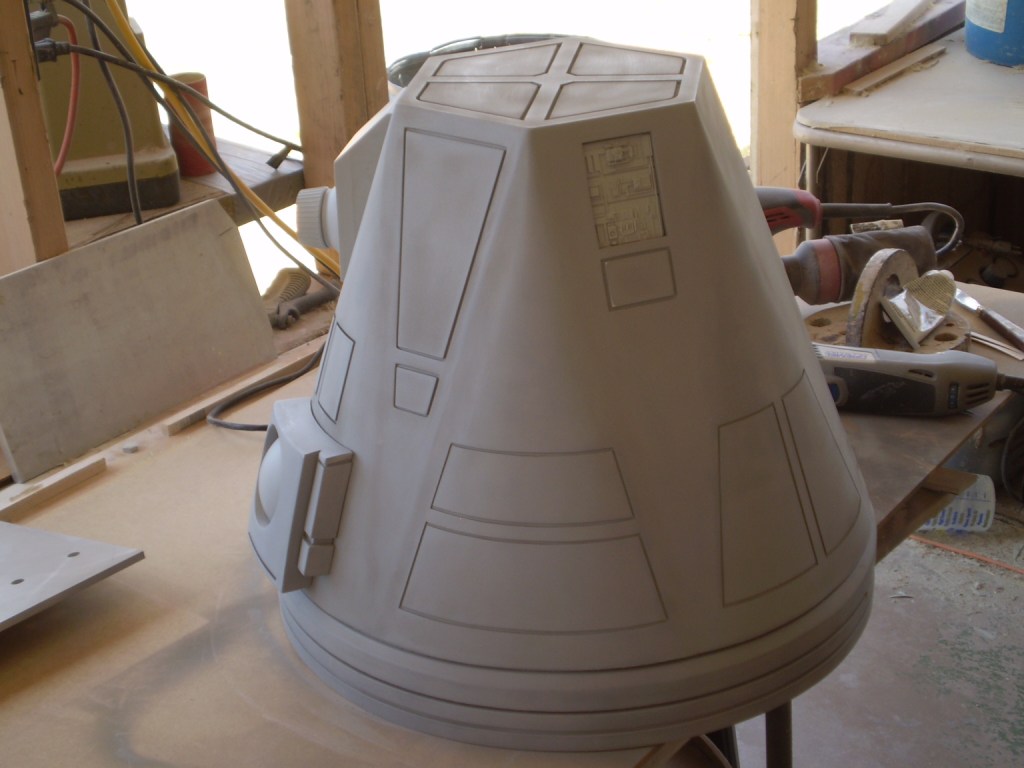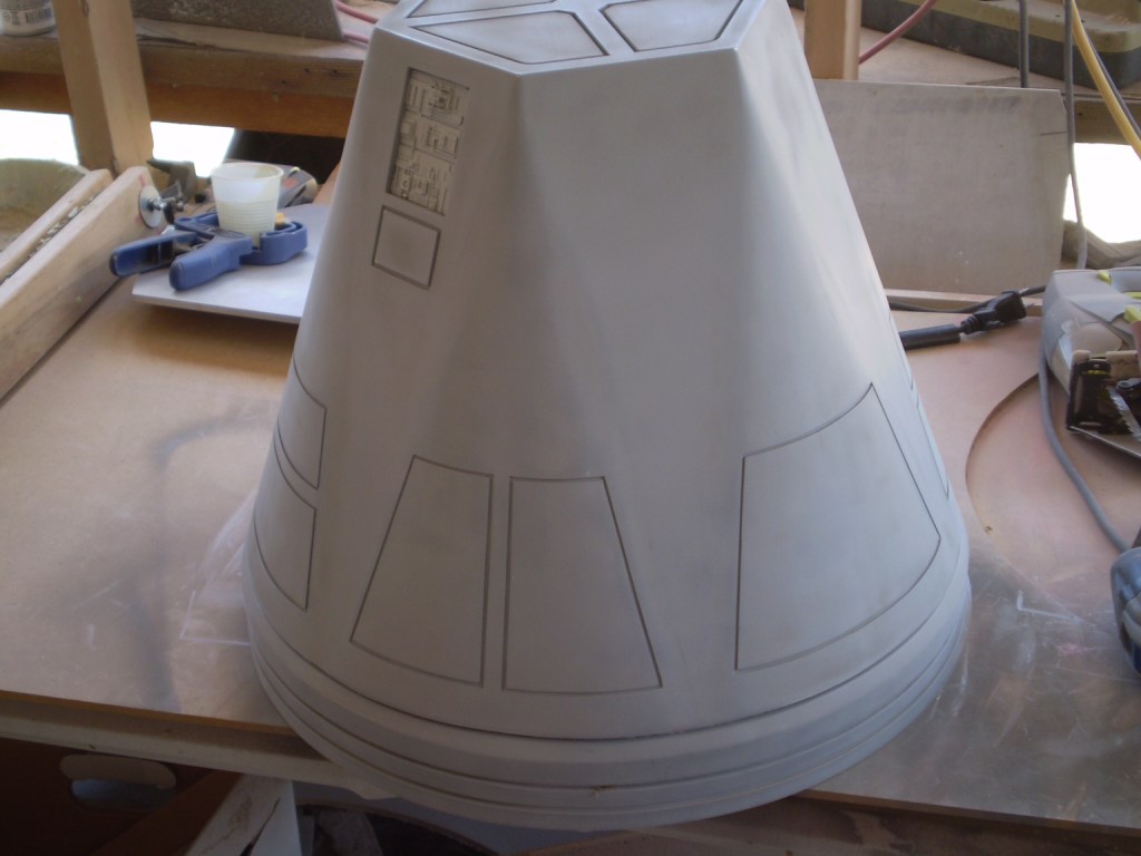 Puede parecer que sólo quedaba pintar y poner un par de luces, pero en absoluto. Aunque el acabado del dome es muy bueno, había mucho trabajo por delante. Para empezar, la parte inferior no encajaba con el tamaño de mi aro de giro, y había que ver como solucionarlo. El dome venía separado en 2 partes, la parte de los 3 aros que veis en la imagen, y la parte superior, por lo que tocaba ver como fijarlo. El holoproyector era estático y lo quería poder mover, la parte de atrás era lisa y quería que tuviese alguna luz, etc.