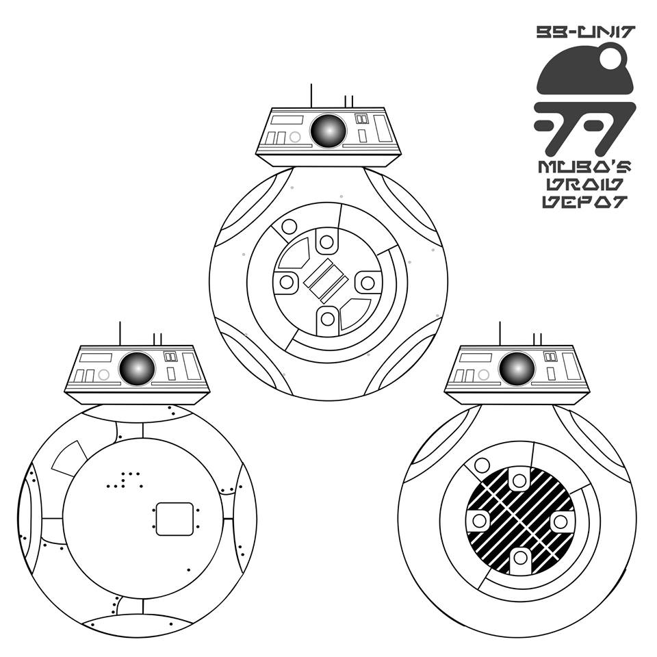 Estas plantillas son las que están en el Droid Depot de Galaxy Edge (El parque temático de Star Wars) para poder diseñar tus droides. Hay de varios modelos, desde el R0 al R6, más 3 tipos de unidades BB.
