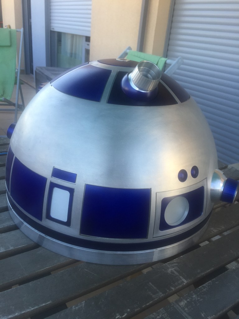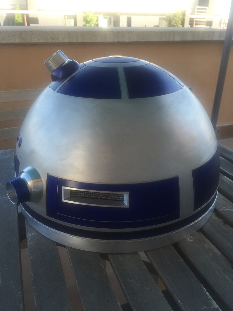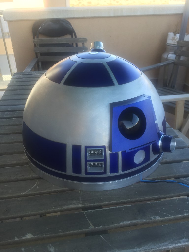 Para terminarlo solo me faltaba poner los Holoproyectores, que puse los que un compañero Alemán hace en aluminio, colocar los paneles y el radar Eye y pintar todo. Fue mucho trabajo que me llevó varios meses, pero que como recompensa al final quedo con este aspecto. ¡¡El dome de R2D2 estaba terminado!!