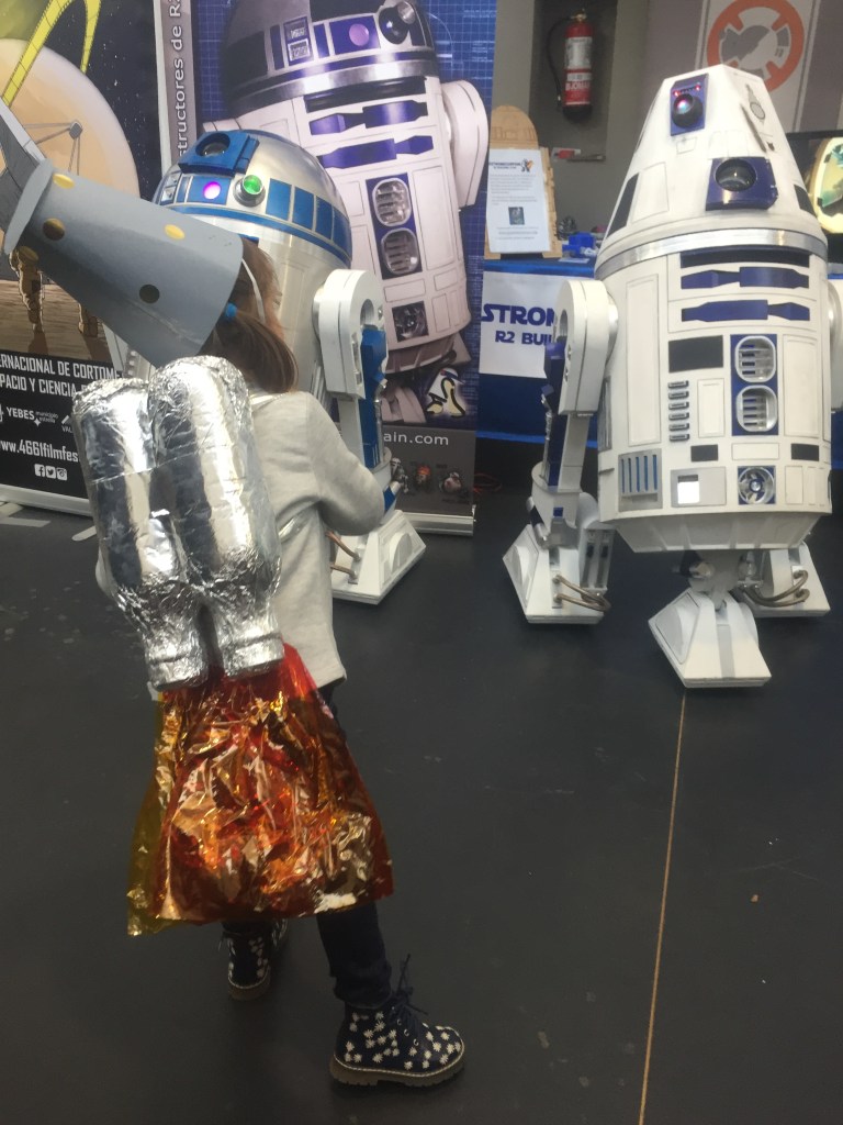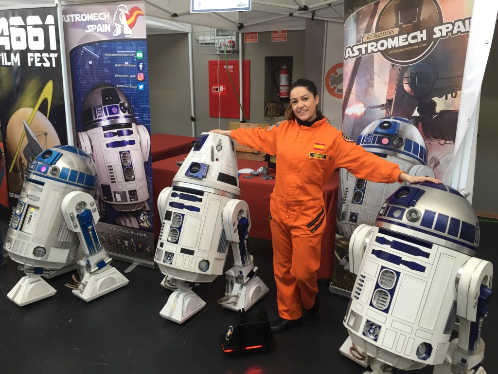 El fin de semana del 8 de Marzo de 2019 acudí a mi segundo evento con R4-E18. Fue en Expoastronomica 2019 (Yebes – Guadalajara) gracias a nuestros amigos de 4661FilmFest, pues dentro de este evento de astronomía, se realizaba el II certamen Internacional de cortometrajes del Espacio y Ciencia Ficción.