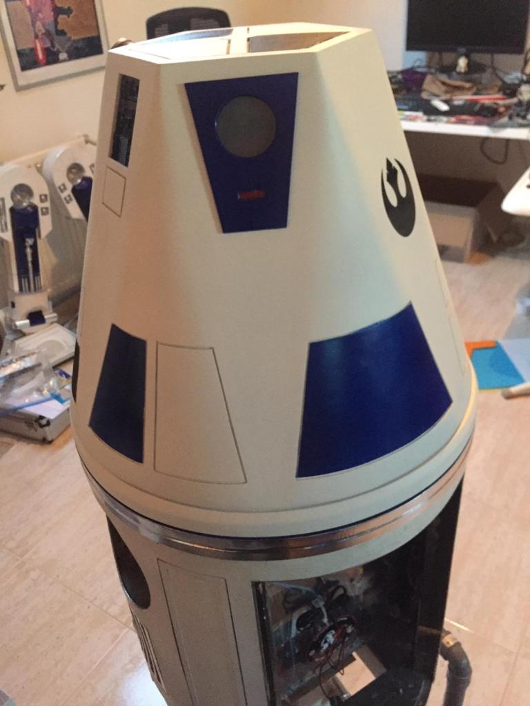 Tras terminar a R4, tocaba ya meterse con toda la pintura del dome. He de reconocer que este paso me dio mucha más guerra de la esperada. No soy un experto ni mucho menos en tema pinturas, y algo que pensaba sería relativamente sencillo, como es dar capa base, pintar de blanco, enmascarar las zonas a proteger, y pintar en azul lo que quería, se convirtió en un gran problema.