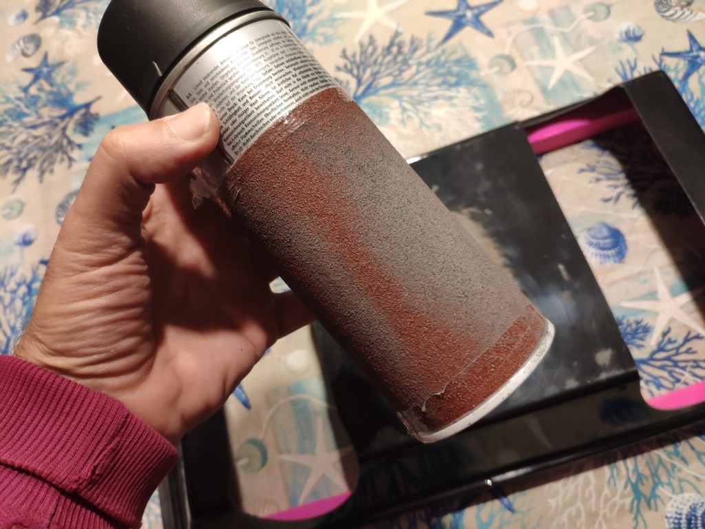 Para agrandar el agujero pero ya con una forma cilíndrica, usé el consejo que mi compañero Fer me dio. Coger una lija y una botella o bote con una medida similar y ponerle una lija alrededor. Con eso, consigues que los huecos de las ruedas queden perfectos!