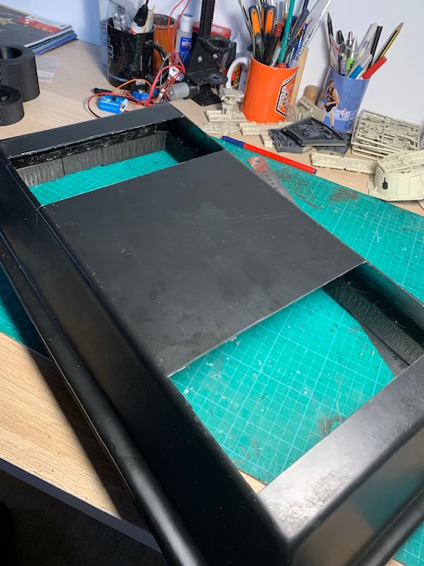 Tras ello fui mascando en el lateral el contorno de las ruedas y realizando el corte con cúter sabiendo que el hueco final será mucho mayor, por lo que cualquier pequeña irregularidad en el corte quedaría luego solucionada.