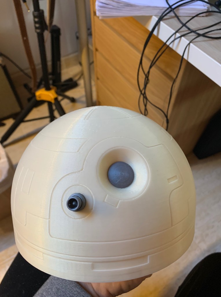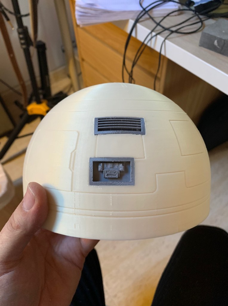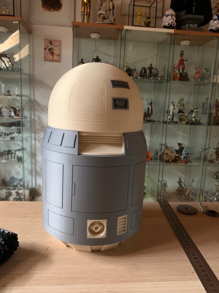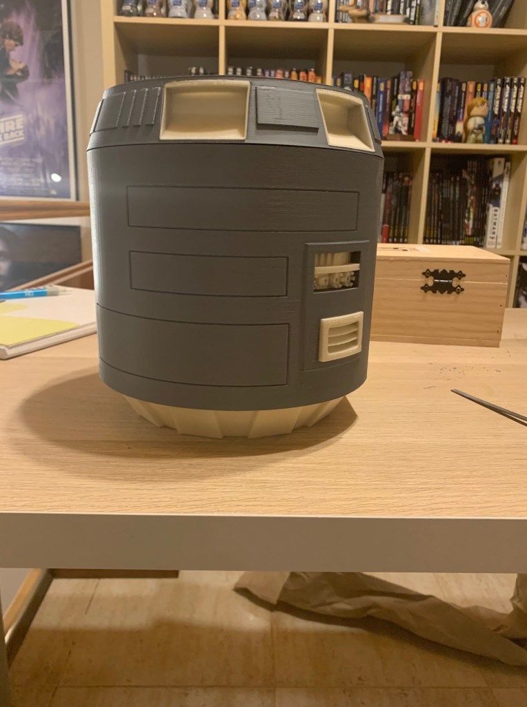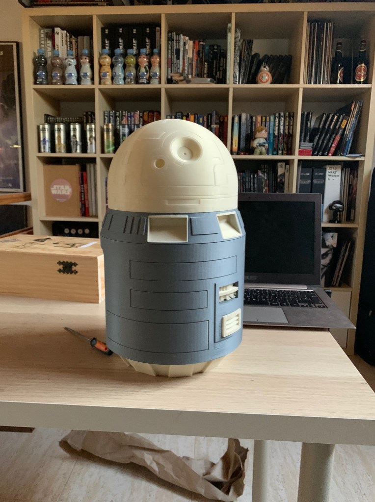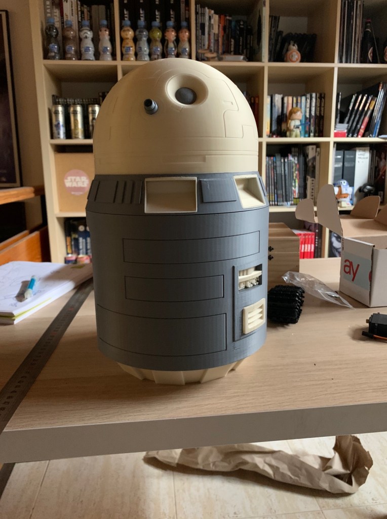 Tras imprimir los detalles del dome (0.2 15%), el estado actual del droide es este: