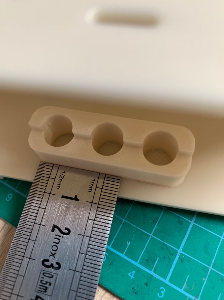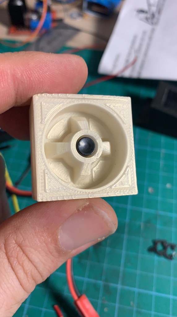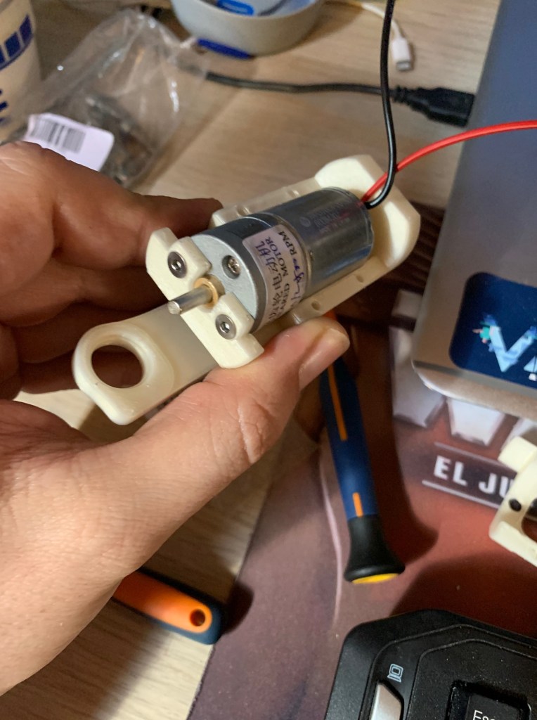 Es la parte más «dificil» del droide, pero una vez montas el primero, el segundo es muy sencillo. Para acoplar el motor a las patas lleva un par de tornillos en un lateral y una pieza de soporte en el otro. Esa pieza yo la he puesto a 0,6mm del borde. Había visto que era a 10,5mm, pero no se si es una versión antigua de las patas o de los motores, pero para que a mi me queden bien deben ir a 0,6mm.