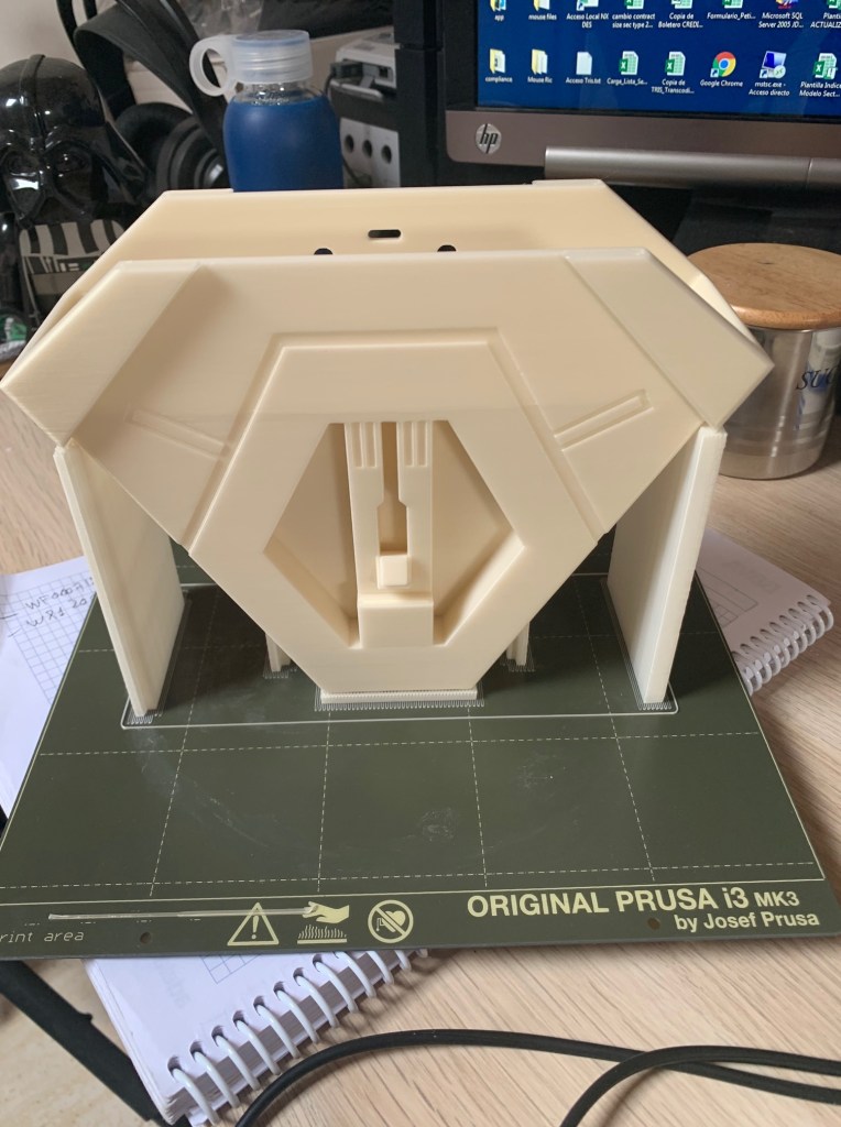 Una vez montados los motores comencé a imprimir las patas. Son 2 piezas muy grandes que requieren algunos soportes. Tras mirar y preguntar, me recomendaron esta opción, y la verdad es que me ha funcionado muy bien.
