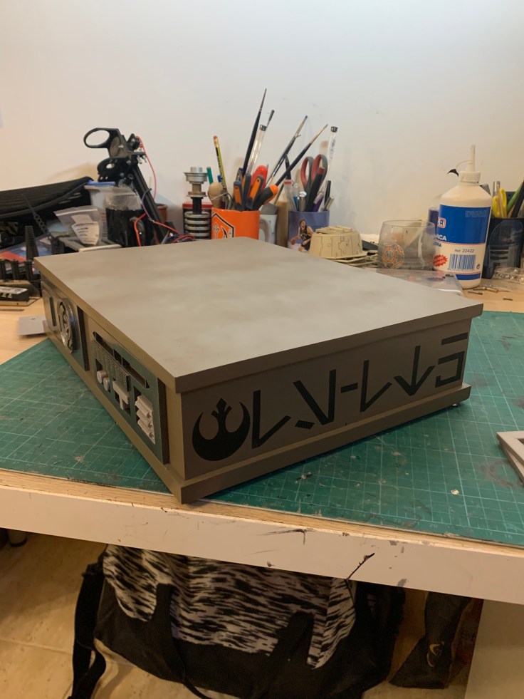 Escogí un color gris verdoso, que pudiera dar aspecto de algo usado por la Alianza Rebelde.