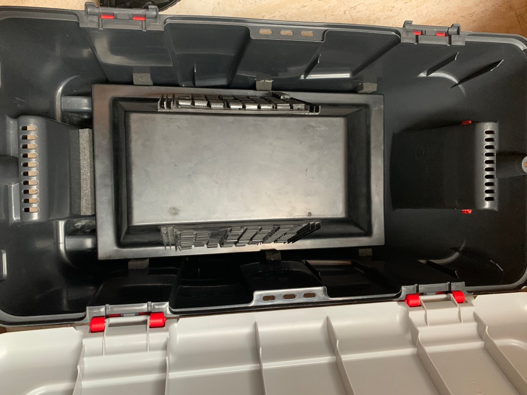 En su día estas cajas se vendían en Decathlon. Ahora parece que ya no, pero se pueden encontrar fácilmente por Internet por unos 45€. Sus medidas exteriores son 80 cm x 43 cm x 37 cm. Su interior lógicamente es algo menos, y hace que el droide encaje muy bien.