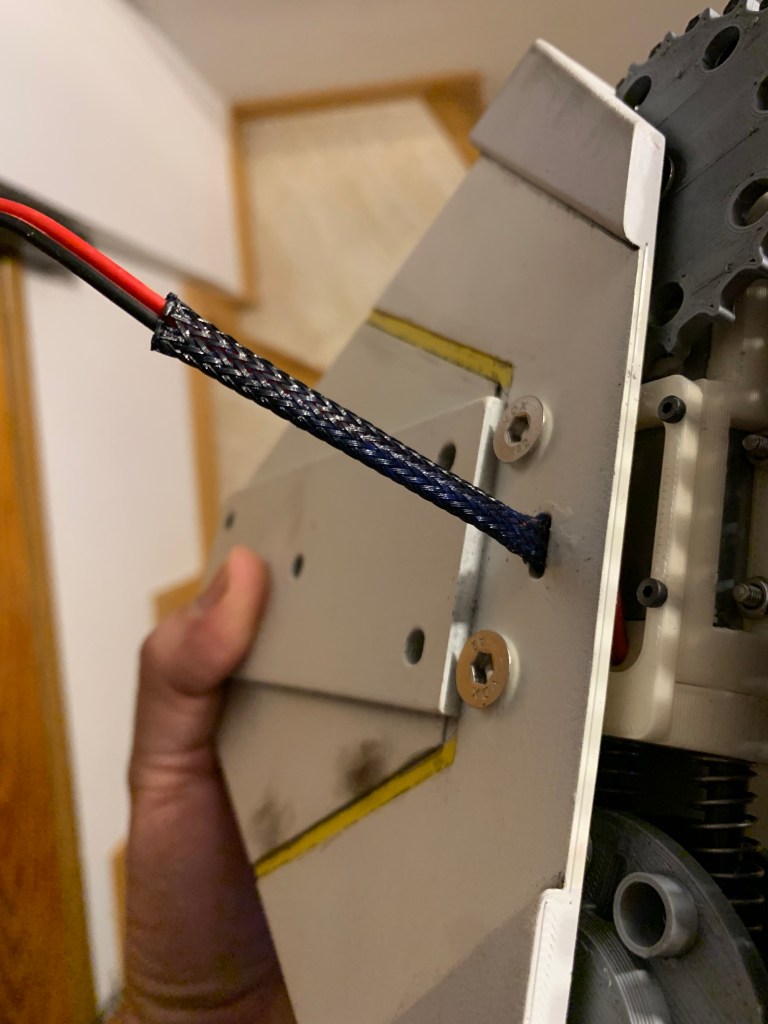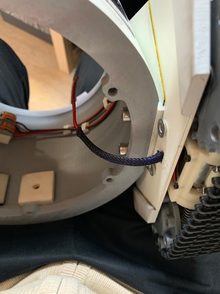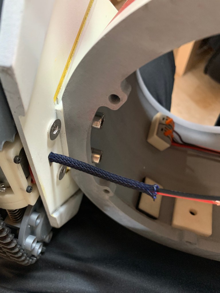 Para finalizar al 100% este droide hay que hablar de los detalles finales que le he dado. El primero ha sido proteger los cables que van de las patas al cuerpo con una malla protectora de cables. Estos cables van por fuera del cuerpo, por lo que están expuestos a poder dañarse. Además son ligeramente visibles, por lo que aparte de proteger, damos un acabado más «profesional»