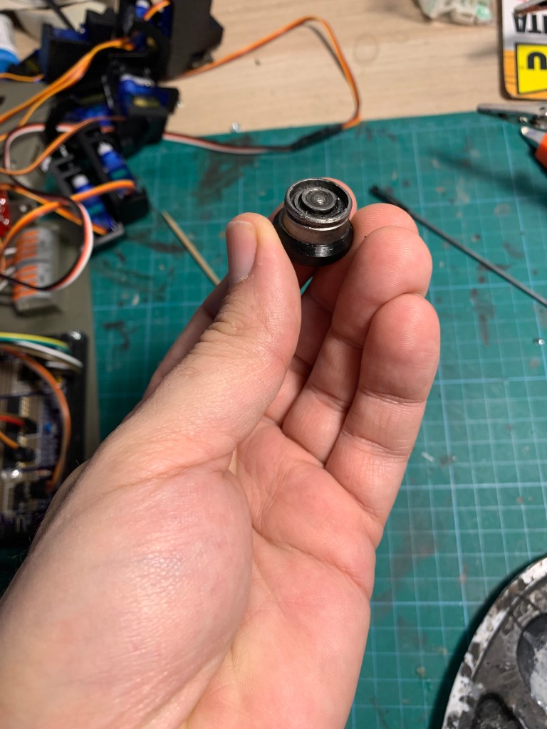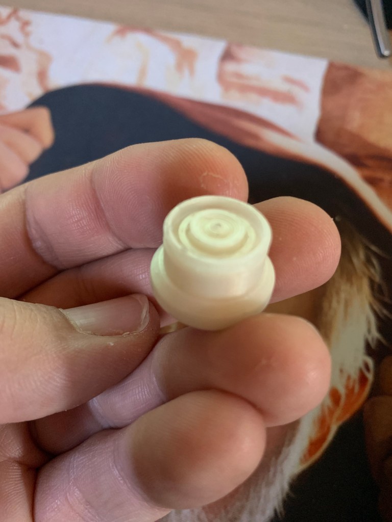 Por último, terminé de pintar el Restraining bolt (candado de seguridad) que hice para el droide. Es el mismo que el de R2 pero escalado a 39.1 para que el tamaño coincida con el droide. Está impreso con 3D y se sujeta al cuerpo con un imán, por lo que lo puedo poner y quitar fácilmente.
