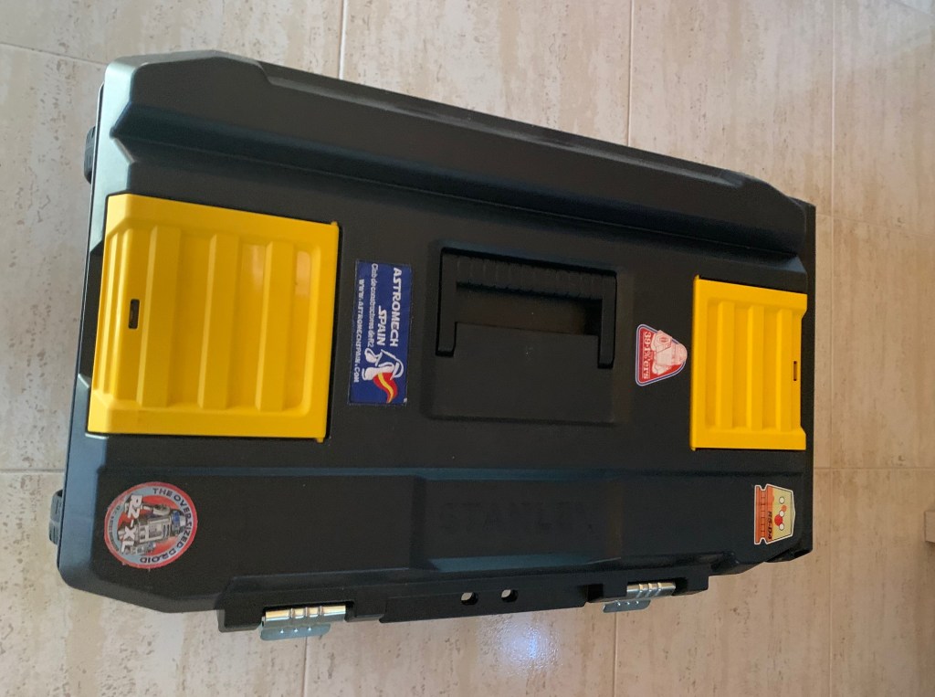 Tras comprobar las medidas del droide, encontré la caja de herramientas STANLEY STST1-80150 que es perfecta. Os dejo unas imágenes de como es.