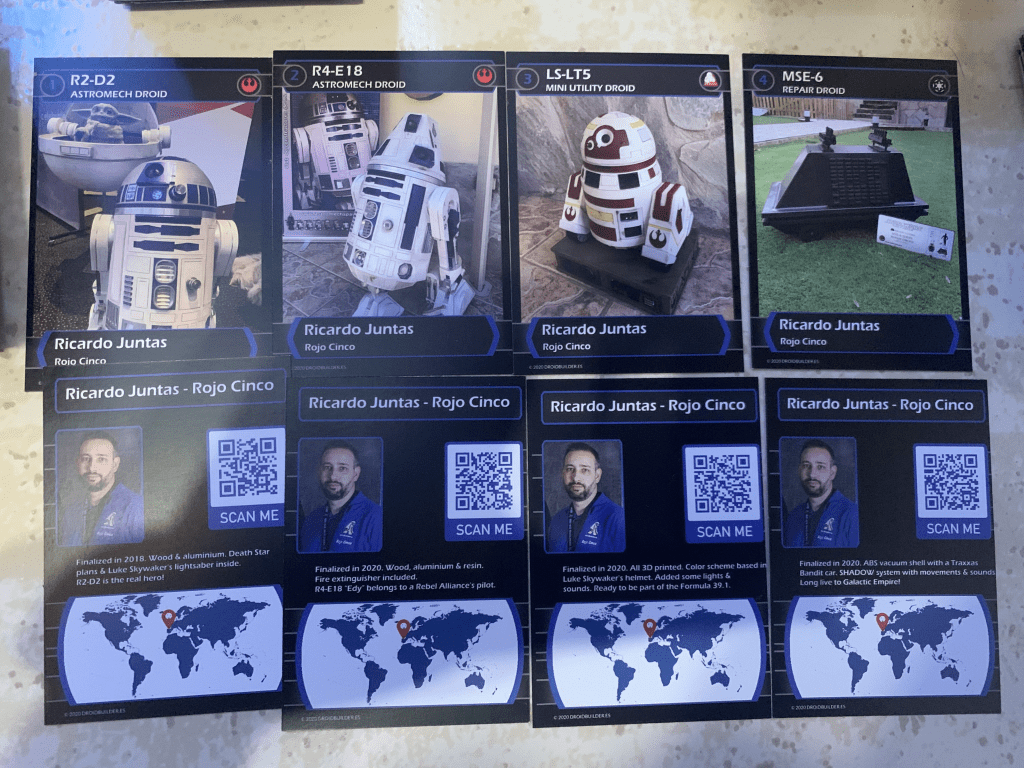 Mi club de constructores en España (Astromech Spain) tiene su propia serie de Trading Cards, entre las que se encuentras mis 2 droides astromecánicos que están terminados actualmente.