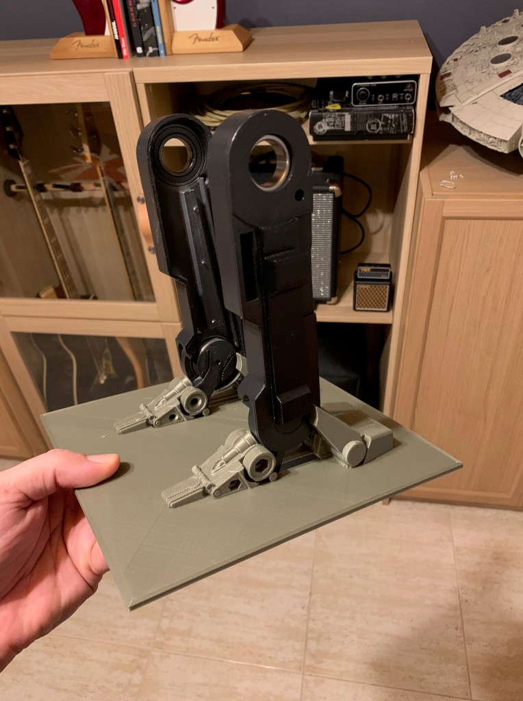 Mientras hacia todo esto imprimí la parte de los pies junto con la base que lleva. Aquí se puede ver como queda con las patas inferiores.
