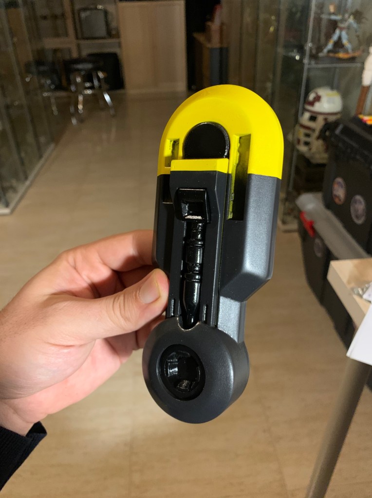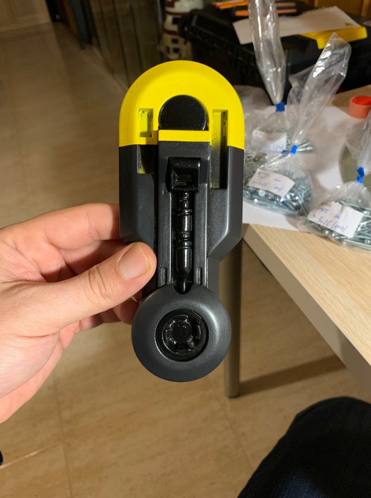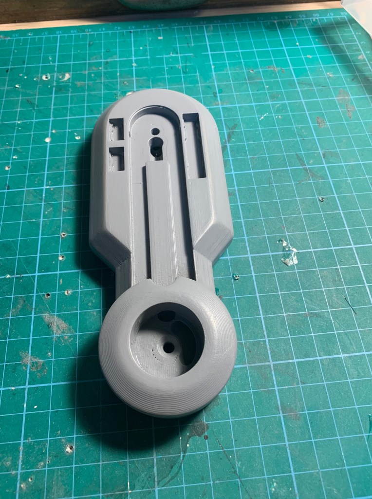 Tras imprimir todas las piezas lo primero volvió a ser lijar todas las piezas y dar varias capas aparejo. Tras repetir este proceso de lija y aparejo unas pocas veces, la pieza principal quedó con este aspecto