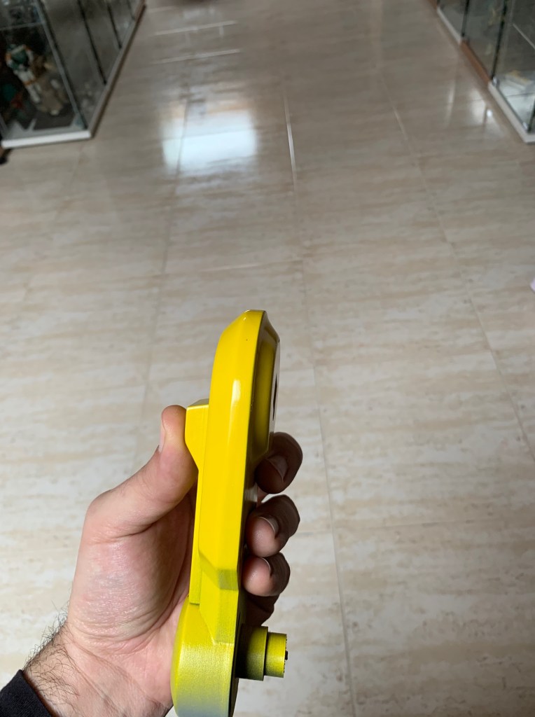 Para realizar el esquema de color que lleva el droide comenzamos pintando de color amarillo la parte superior. Aquí no enmascaramos nada. Eso ya lo haremos cuando pintemos la parte inferior.