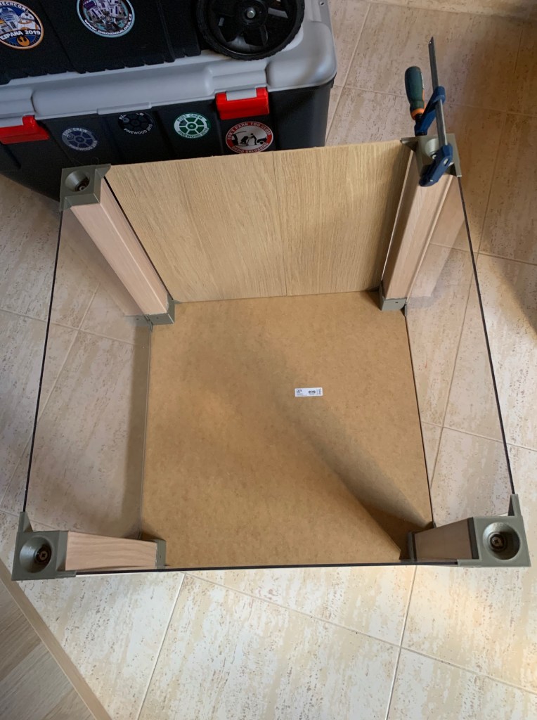 Tras imprimir las piezas necesarias para sujetar las futuras paredes de metacrilato, realicé la primera prueba de como quedaria en altura y espacio.