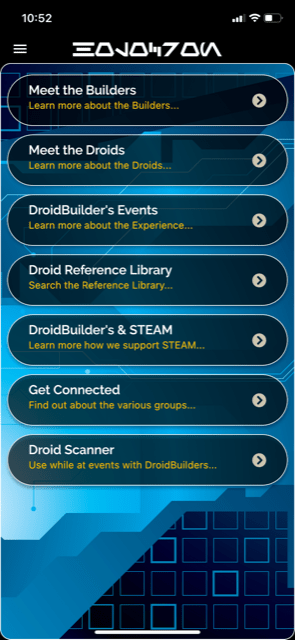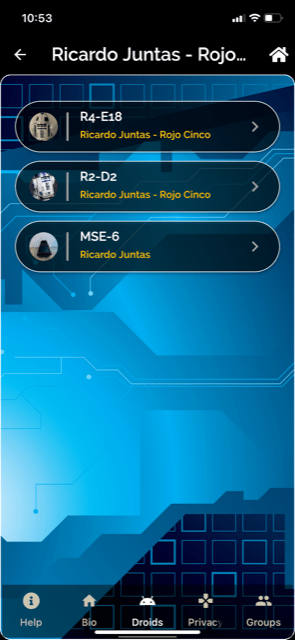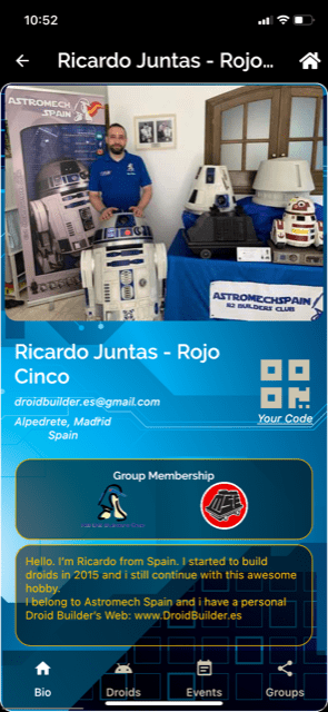 Esta app es una base de datos de constructores y droides a nivel mundial. Si eres un constructor puedes registrarte en la web y solicitar que te den perfil constructor, desde donde podrá publicar tu Bio, tus droides terminados a escala 1:1, etc.
