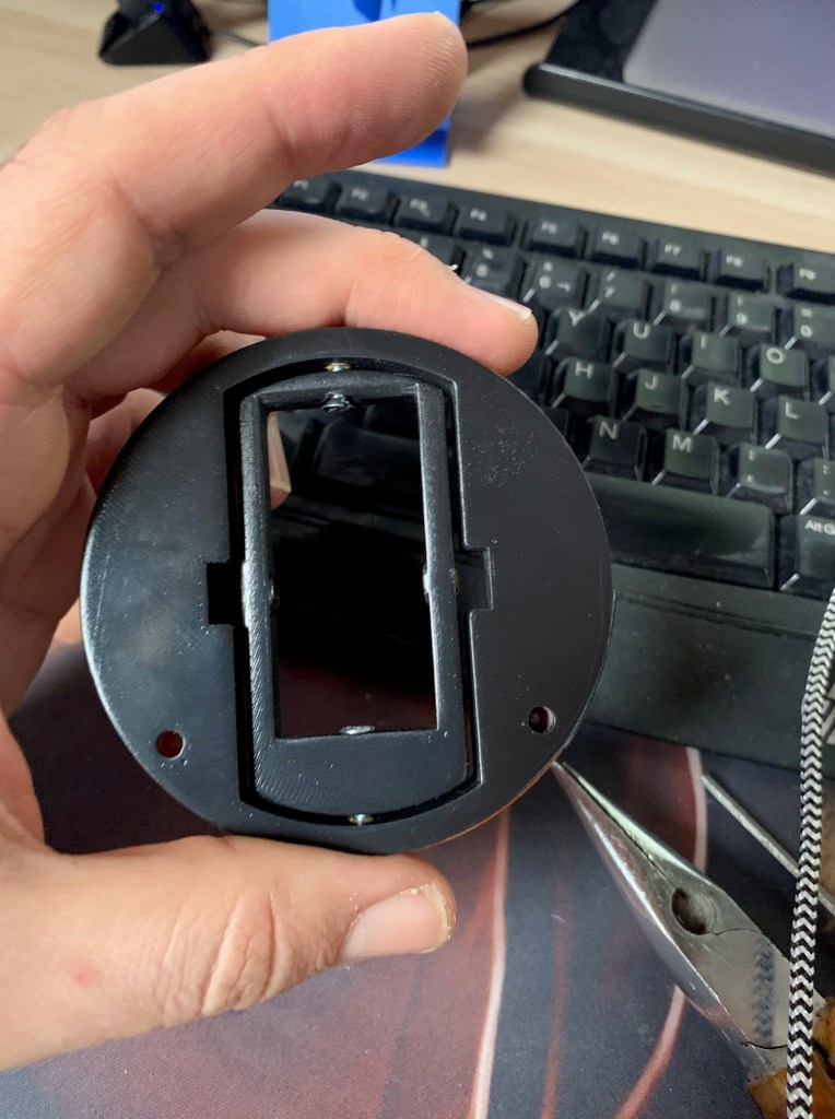 Para que los rodamientos no sean visibles hay un fichero en Thingiverse para imprimir una pieza que los tapa. Ese archivo lo ha subido también Baddeley con el resto de archivos del droide. Se llama Dany Cosmetic Cover. Os dejo esta foto para que veáis como va, pero en esta imagen aún no está preparada. Es según la saqué de la impresora, aunque al ser negra pues hasta queda bien XD