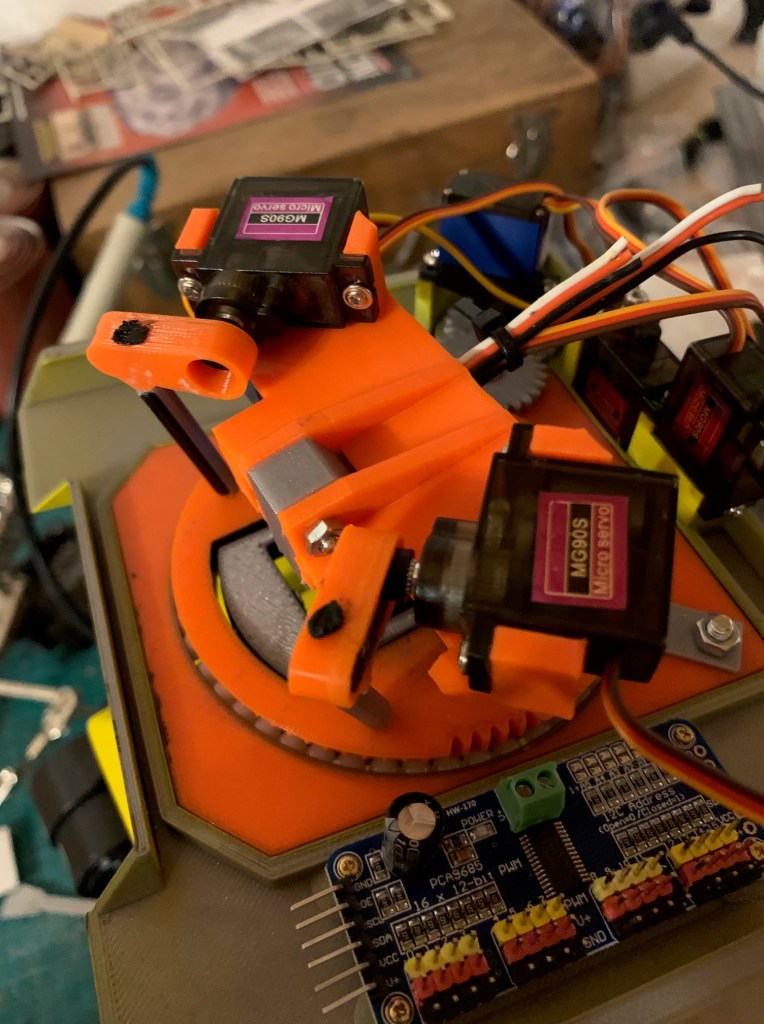 Tras seguir las instrucciones, fijar el conjunto al cuello y colocar todos los servos en su sitio, el resultado que tenemos es algo así.
