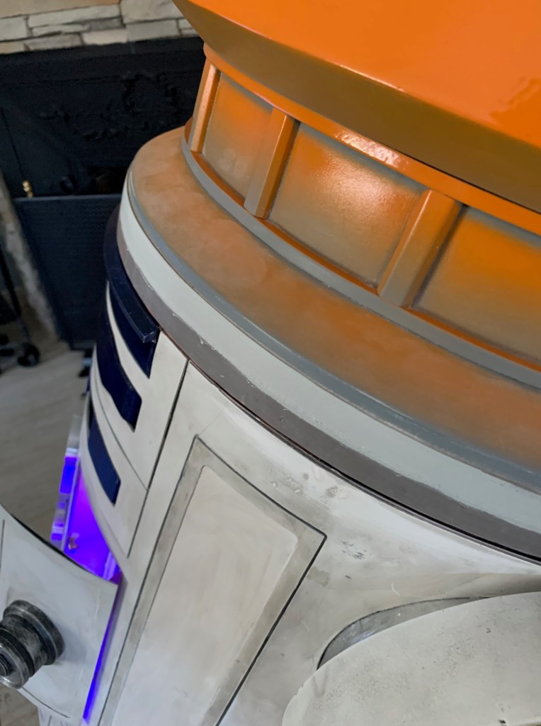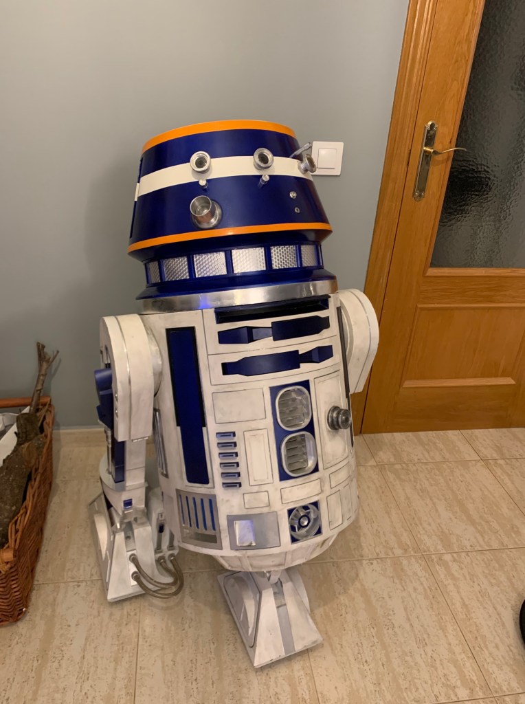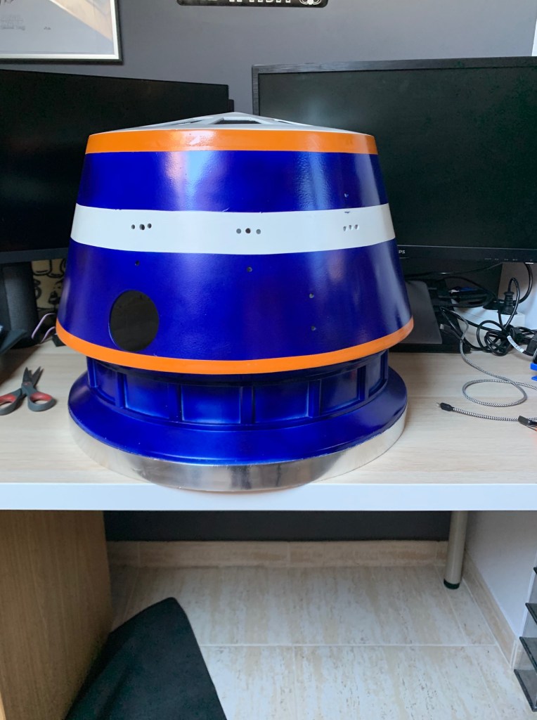 Y este es el aspecto en el cuerpo, con los paneles laterales que llevará este droide, que hace que el aspecto sea aún más distante a R2-D2, pese a compartir el mismo cuerpo ambos droides.