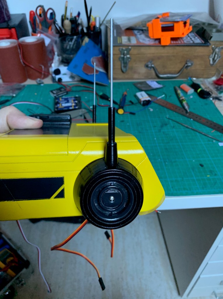 Durante estos días he estado con la última parte que quedaba para tener el droide físicamente terminado. Las orejas y las antenas. Son una parte movil que le da un montón de personalidad al droide.