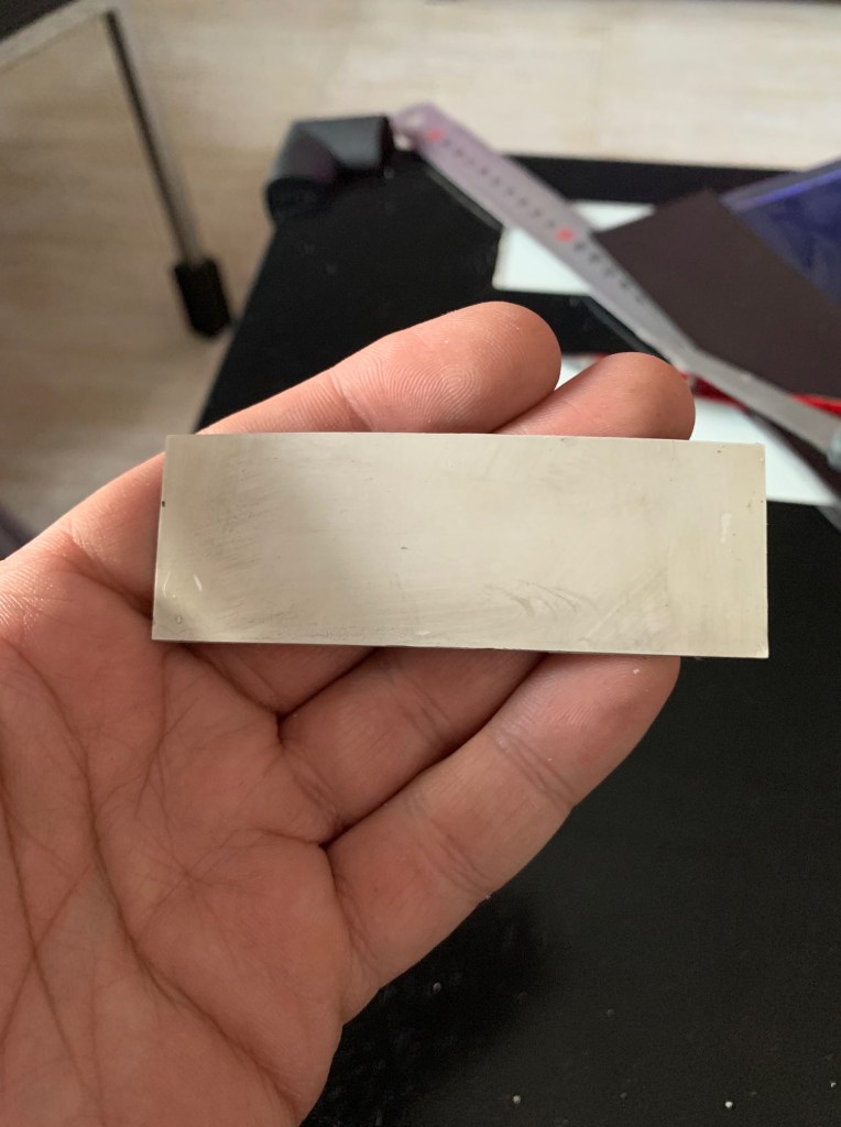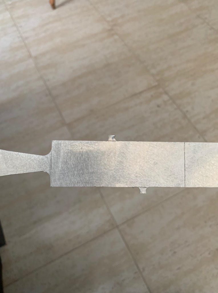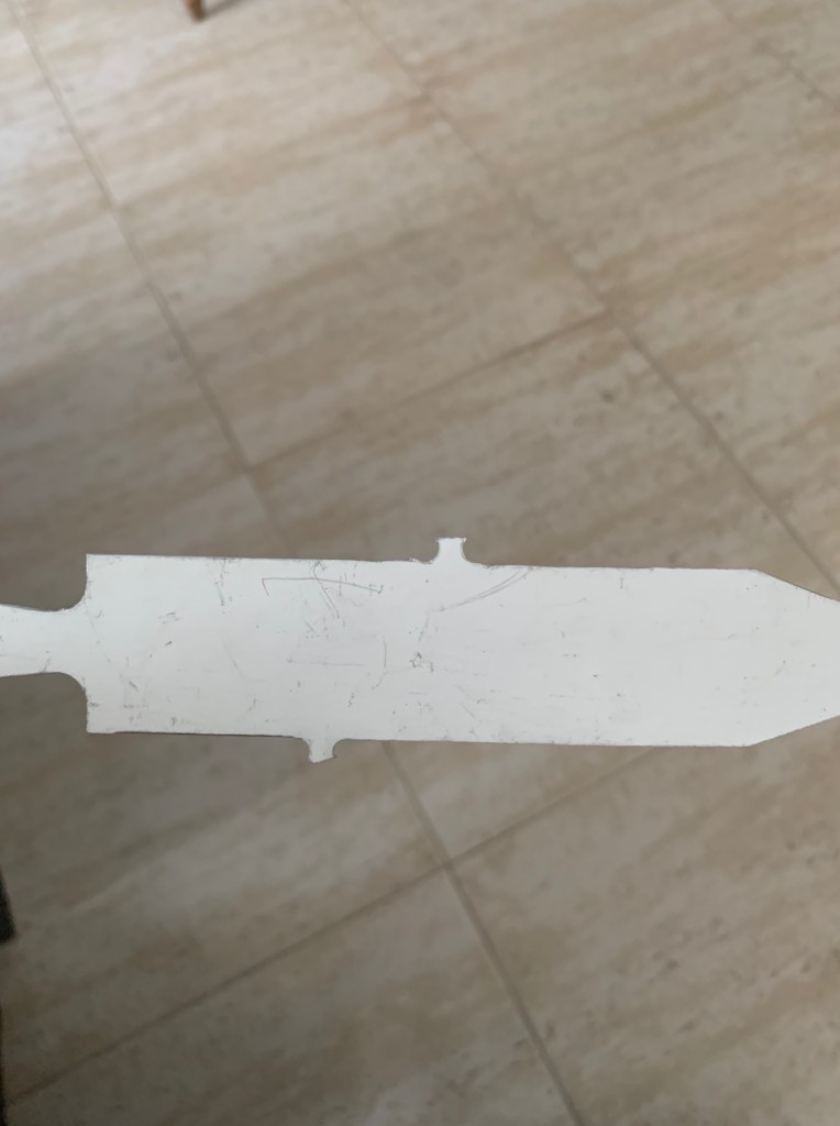 Ahora hay que hacer el panel nuevo en color naranja. Para hacer el panel he usado un trozo de aluminio del sobrante de la piel del droide. En este caso es el trozo de uno de los utility arms. Tras marcar el tamaño, lo corté con cuidado con una sierra de metal, y luego lime todo el borde para que quedara lo mas uniforme posible.