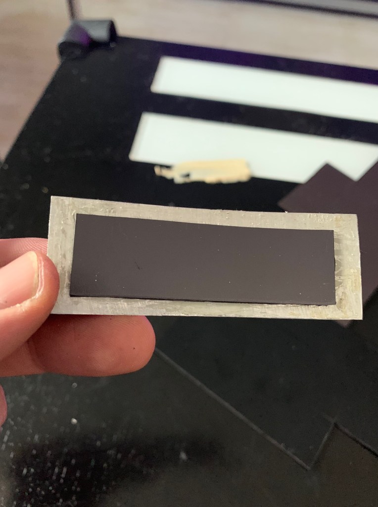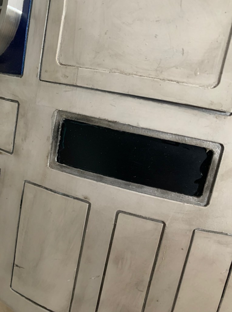La idea es poner una de estas tiras en el interior del hueco del panel en el cuerpo del droide, y otra en la parte interna del panel. Tras cortar la medida correcta, sólo hay que pegarlo en ambas partes.