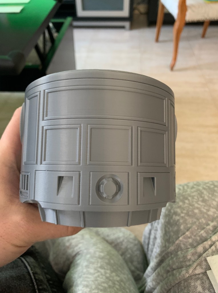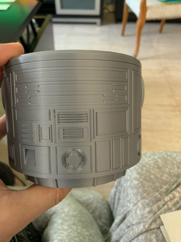 Aunque la impresión es muy buena, y la finalidad de este droide es la que es, tocará dar un poco de lija y aparejo y luego pintar. La base la haré con pintura en Spray, y los detalles los haré a pincel con acrílicos.