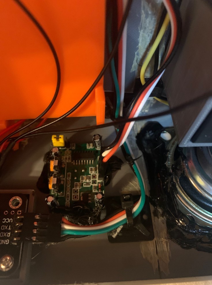 He quitado la carcasa de plástico transparente y dejado sólo el sensor en sí, que va colocado en el hueco que dejé para tal efecto en una de las piezas frontales.