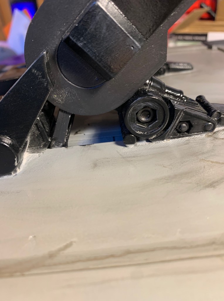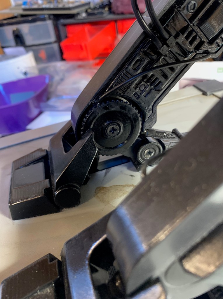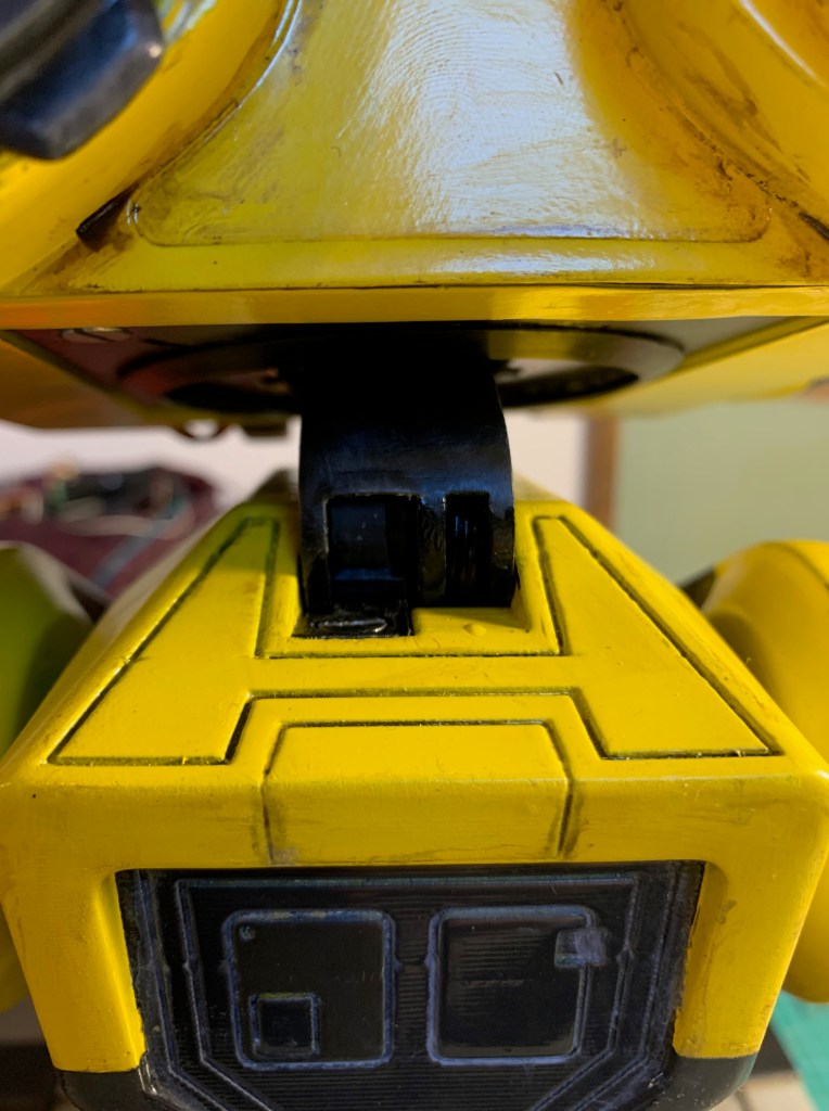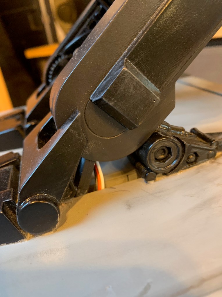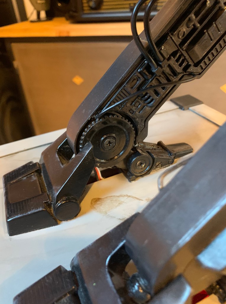 Lo último ha sido pintar los cables visibles del cuello y las patas. Estos últimos adema los he pegado a la pieza del pie que entra en la base para que no se vean. Os dejo fotos del antes y el después: