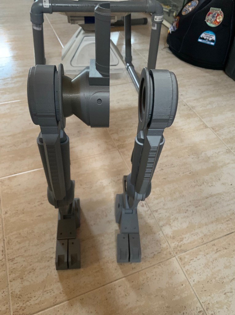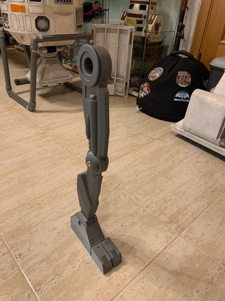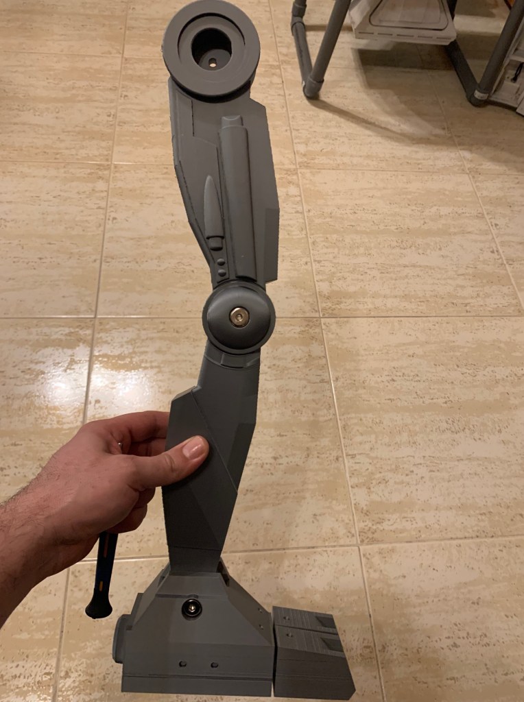 Normalmente partir piezas para su impresión no es buena idea y en un droide funcional no lo haría. Pero este es un droide estático, que colocas en una posición de forma manual y no tiene que sufrir tensiones o vibraciones a las que sí está sometido un droide normal que se mueve. Así que he cortado la pieza y la he impreso así: