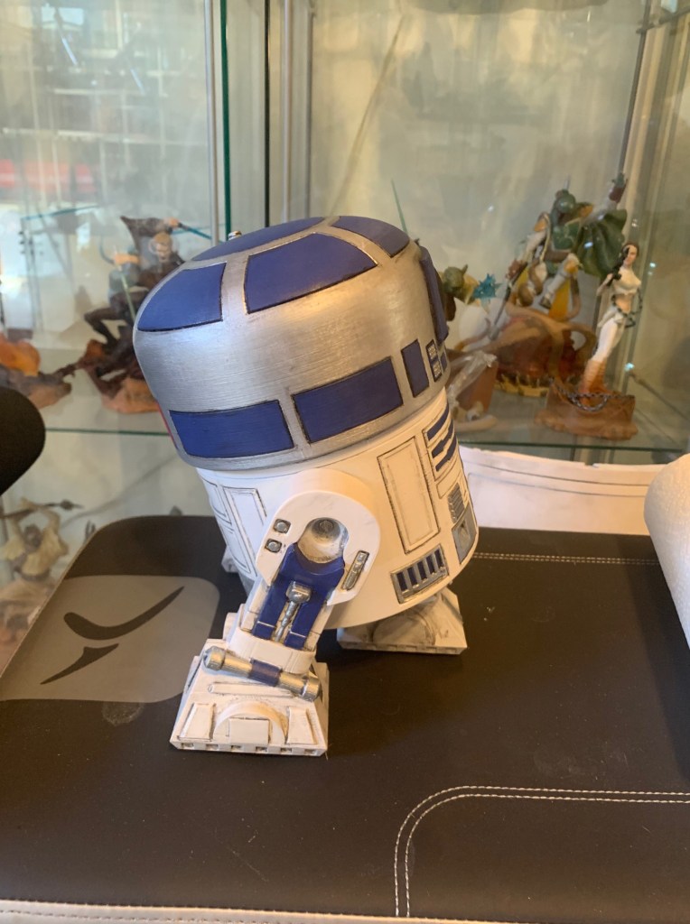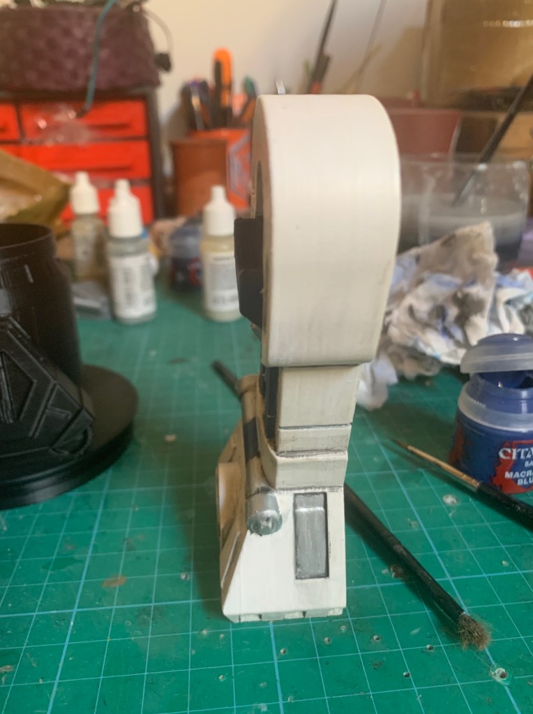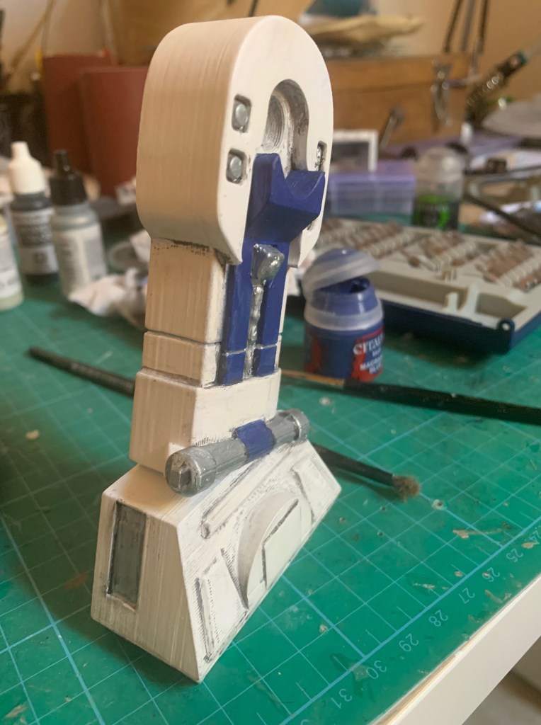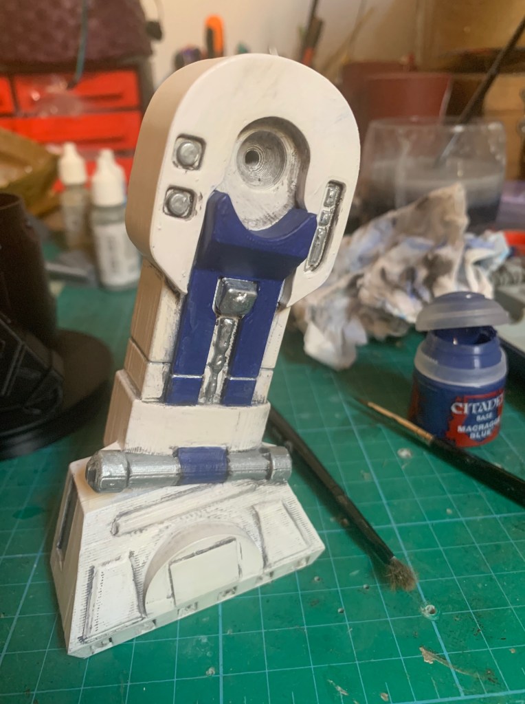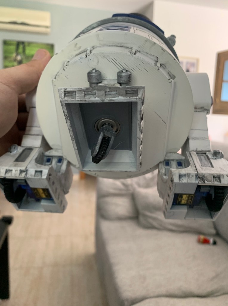 Montar las patas de Baby R2 no tiene mucho misterio. Lo más largo es pintar todo, aunque una vez pintado el dome y el cuerpo, las patas es algo más rápido. De nuevo usé spray acrílico blanco para la base y el resto a pincel.