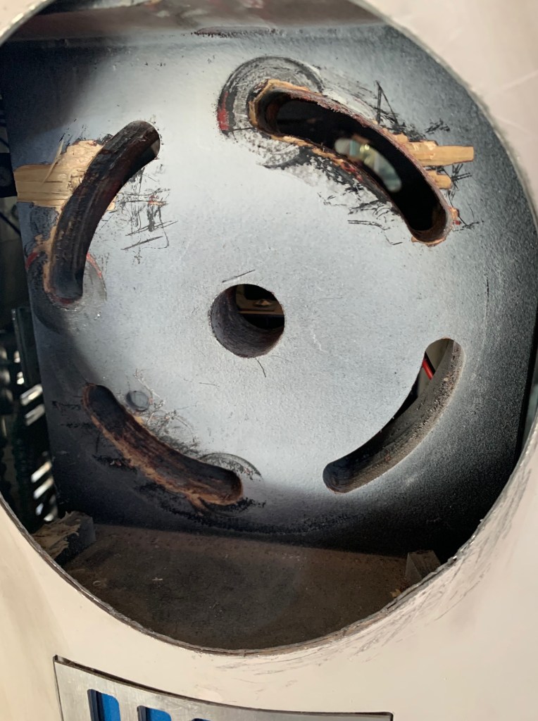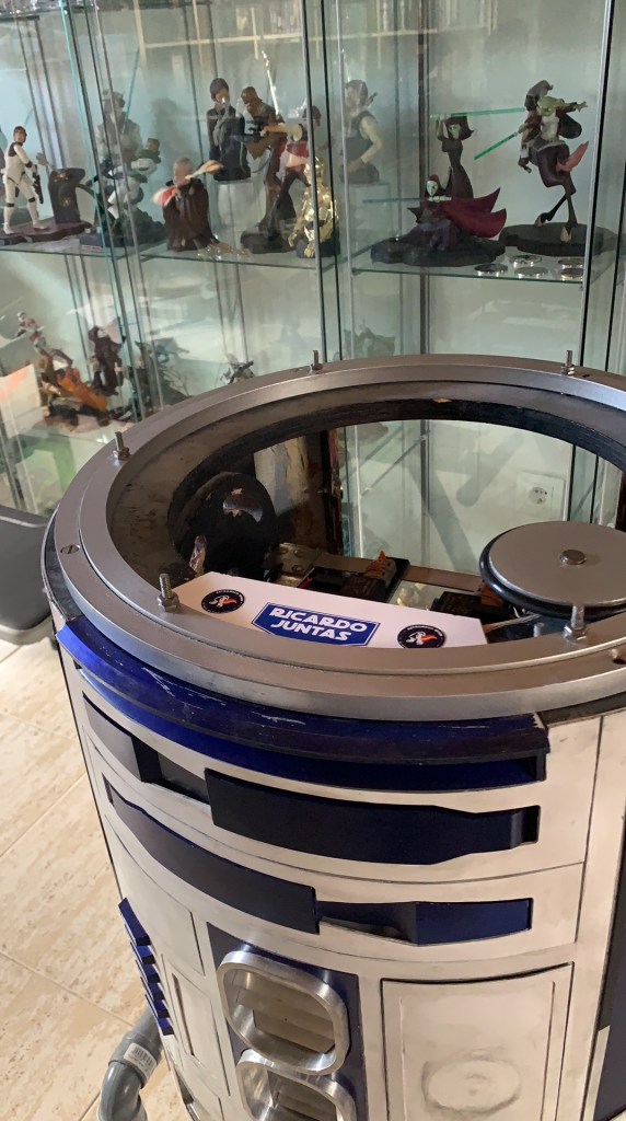 La primera de ella era tapar el corte que tenía en el cuerpo del antiguo motor que usaba para girar la cabeza de R2D2. Ese motor lo acabé cambiando por que hacia mucho ruido y tampoco tenía la velocidad y fuerza que yo quería. Con el nuevo motor estoy encantado, pero siempre se quedó ese hueco en la parte superior del frame de madera de mi droide.