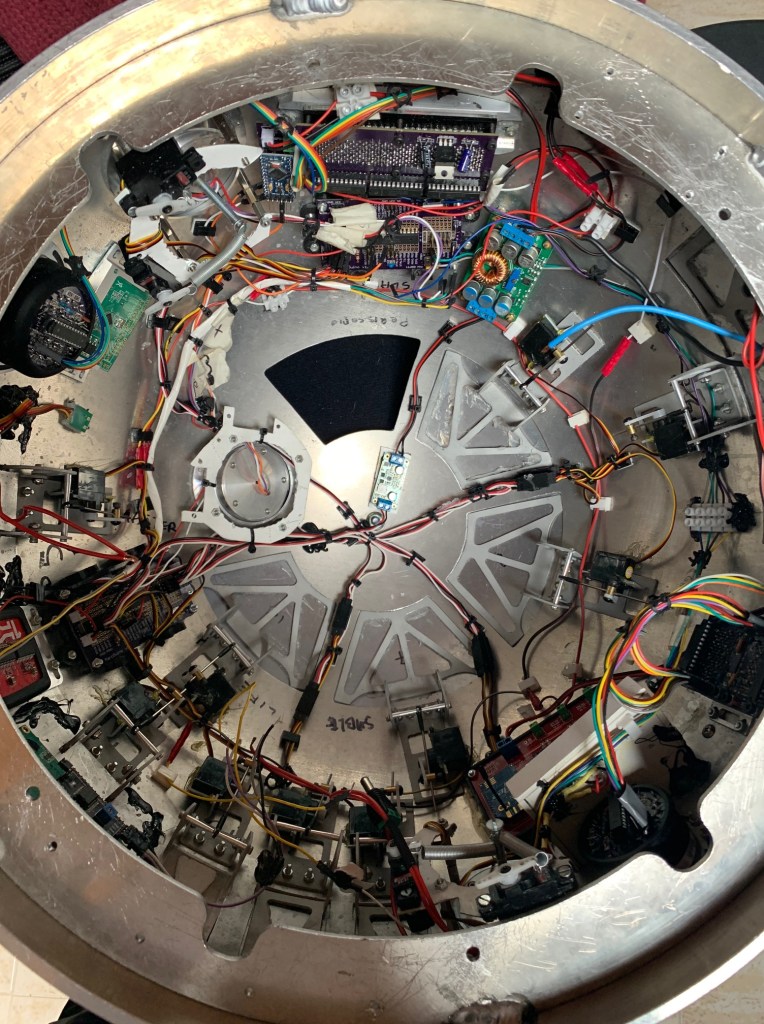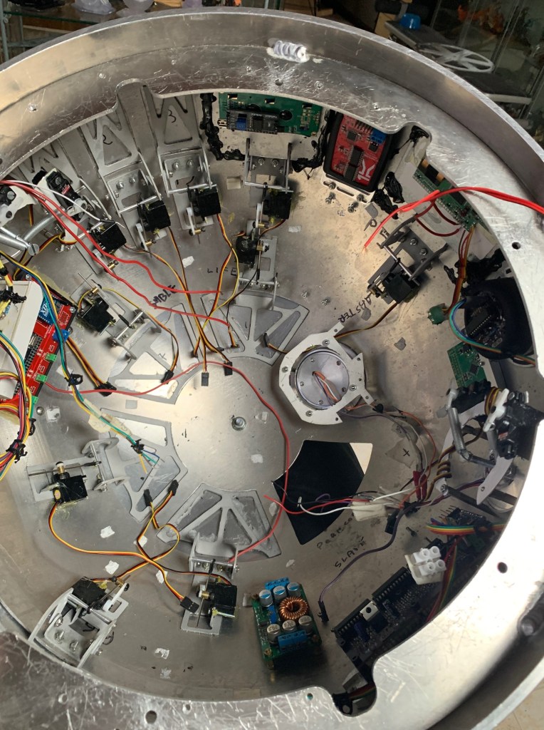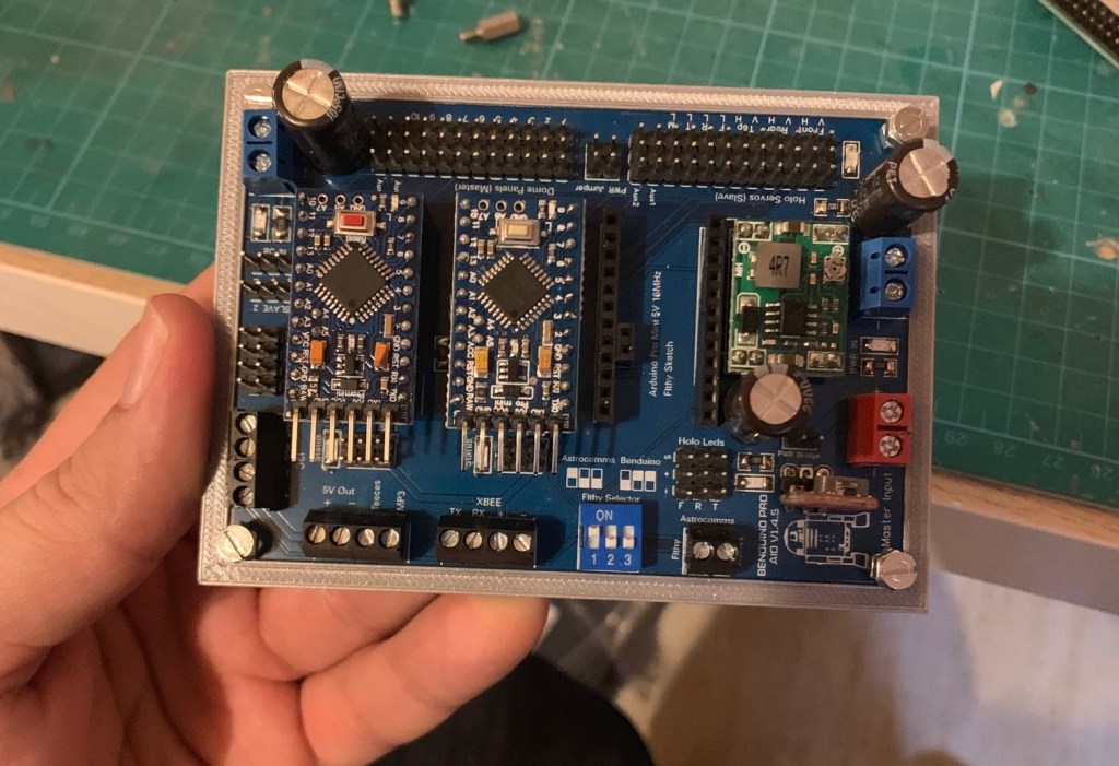 El plato fuerte de todo esto viene ahora. Voy a recablear y cambiar las placas marcduino del mi dome de R2-D2. El motivo de hacer esto es aplicar todo lo que he aprendido estos años en cuanto a colocación de cables, conectores, etc al mi primer dome. Y por otro, hacer un update del sistema curiousmarc, al sistema Benduino, que me permite hacer lo mismo pero en la mitad de espacio y con la posibilidad de meter en el futuro luces multicolor en los holos con el sistema Fltfy. El sistema Benduino es el que ya tengo instalado en mi dome de R5R1 y que de momento me está funcionando muy bien.