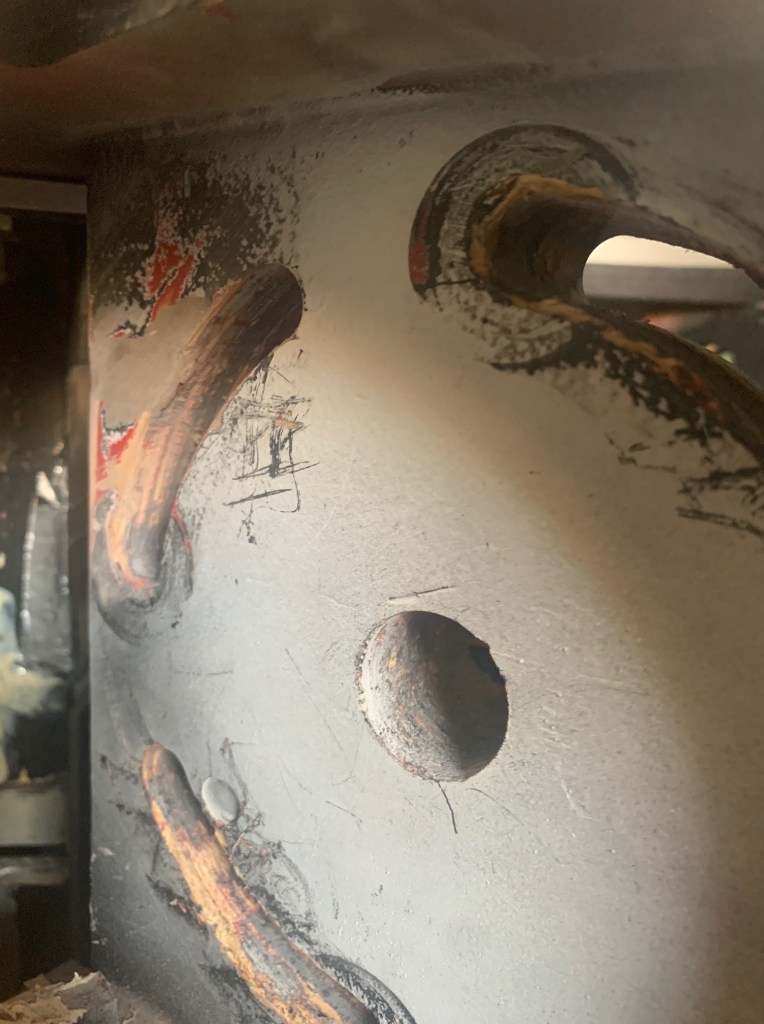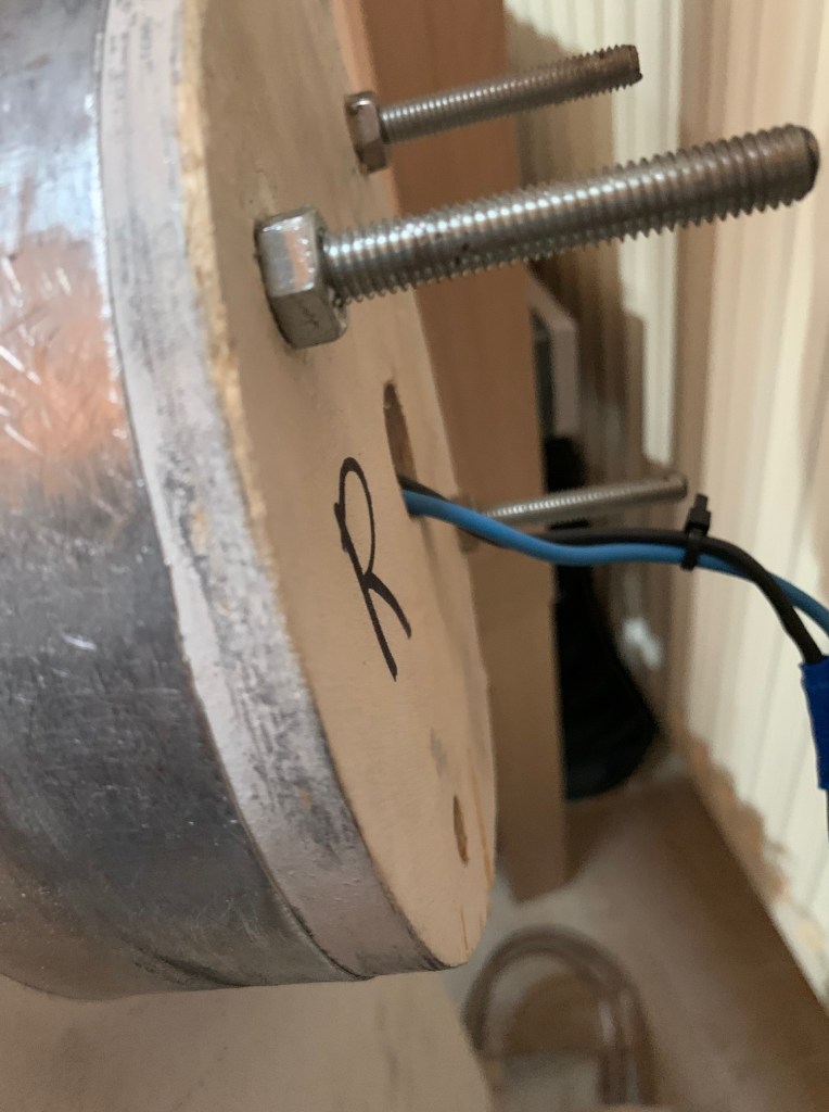 La segunda reparación ha sido en la parte de la sujeción de las patas al frame. Para que las patas no estuviesen pegadas al cuerpo, ya que tienen una pequeña separación, usaba unas tuercas y arandelas. eso estaba causando que poco a poco la madera se fuera dañando en esa zona.