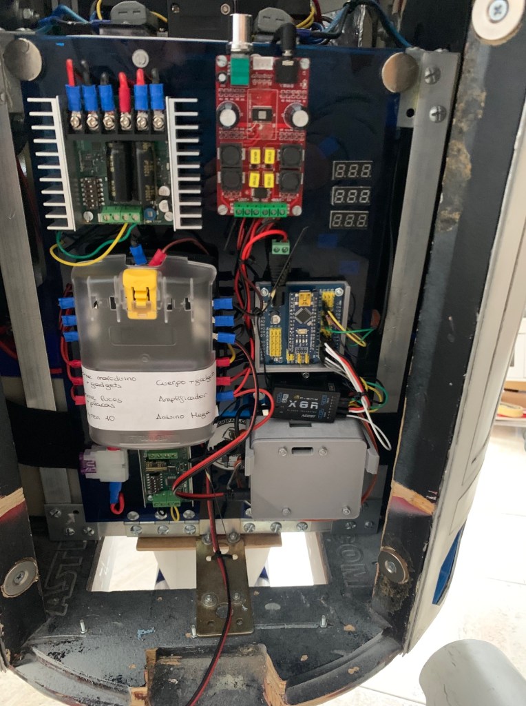 - Sistema de Radio control: Es mucho más seguro que bluetooth, sobre todo en grandes aglomeraciones. No será la primera vez que un droide no responde o se mueve «a su bola» por pillar interferencias de Bluetooth.