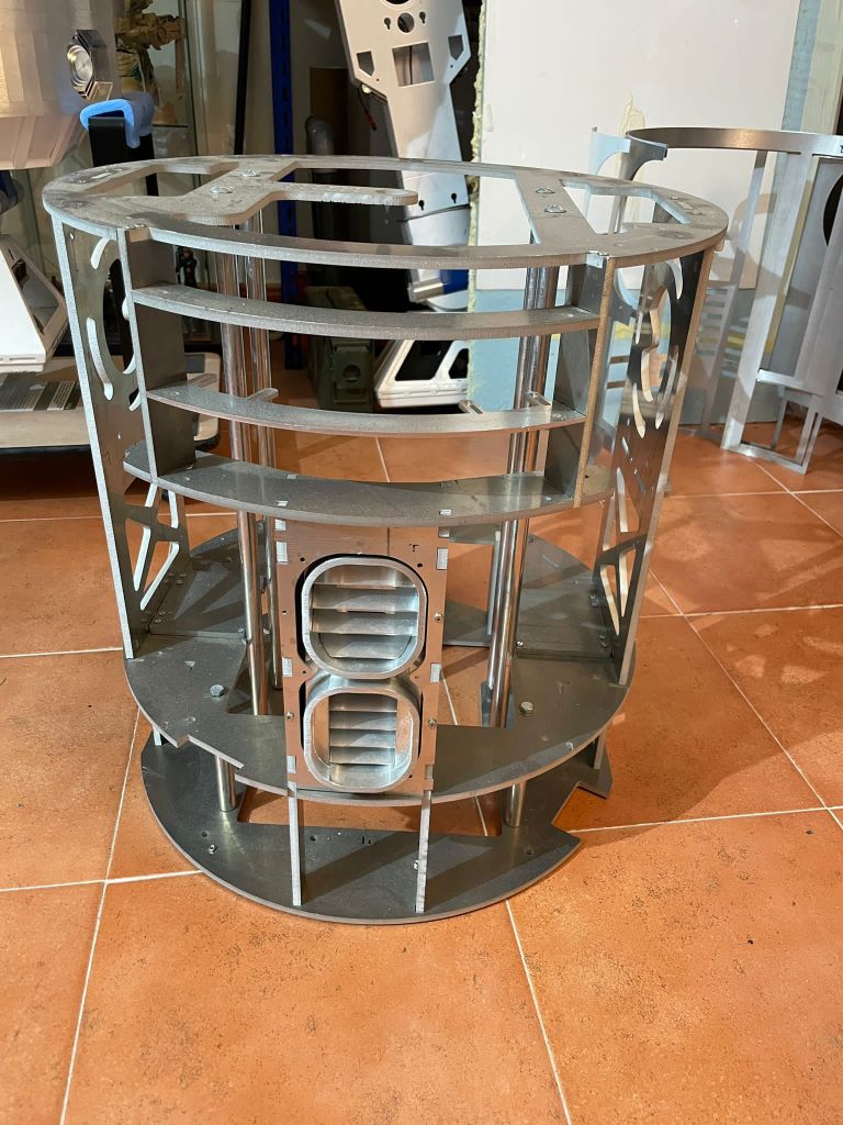 Al frame le faltaban por montar los paneles de las puertas grandes delanteras, unas piezas de refuerzo traseras, y la puerta trasera, además de repasar algunas otras partes que no estaban atornilladas o no estaban bien apretadas. Hay que decir que se trata de un frame no mecanizado, es decir, todos los agujeros para atornillar (incluyendo la rosca) hay que hacerlos.