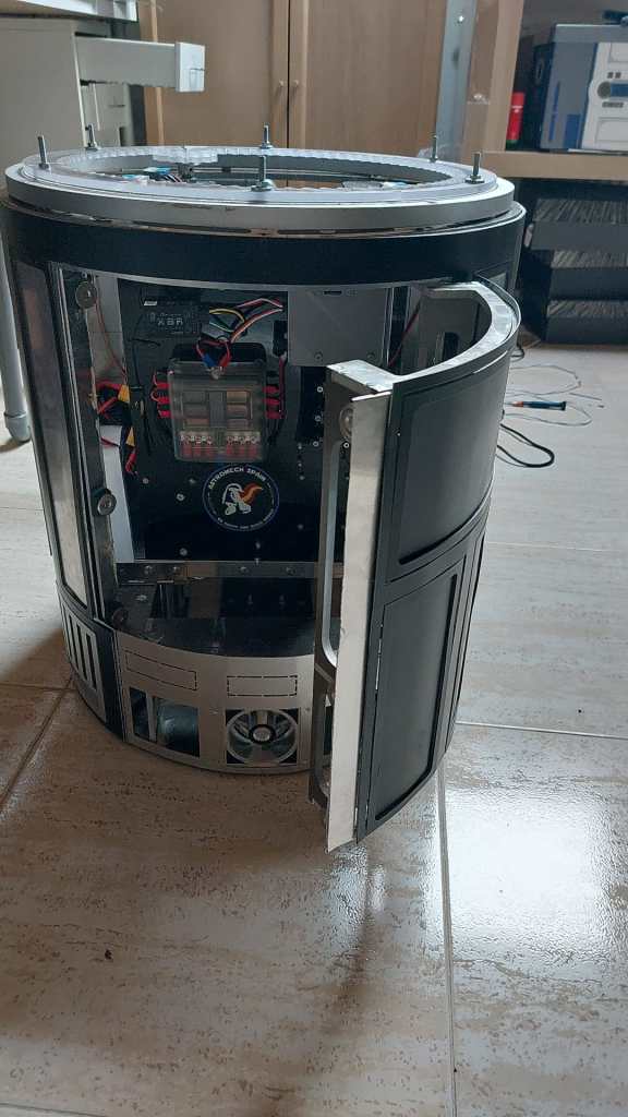 Esta semana me he dedicado a estas cosas básicamente: Colocar todos los paneles de la piel delantera, colocar la piel trasera, colocar la piel en la parte de la puerta trasera y probar que todas las partes automatizadas funcionaban correctamente con el sistema Kyber. En cuanto a los resultados, ha habido un poco de todo.