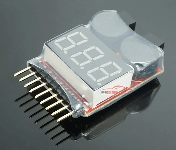 Ya sabéis que las celdas de las baterías LiPo nunca deben bajar de 3V, o las baterías se estropean. Este aparato es configurable y pita muy fuerte si alguna celda llega al umbral que se ha puesto. En mi caso lo he puesto en 3.2V