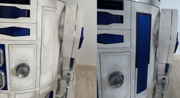 Ya he terminado de instalar los paneles intercambiables en mi droide. Lo primero que hice fue terminar los marcos que van fijados en R2D2. Como se puede ver, he hecho 2 tipos de marcos. Esto es así porque en mi frame de madera no tengo hueco abajo suficiente para poder fijarlo como el de arriba.... Leer más →